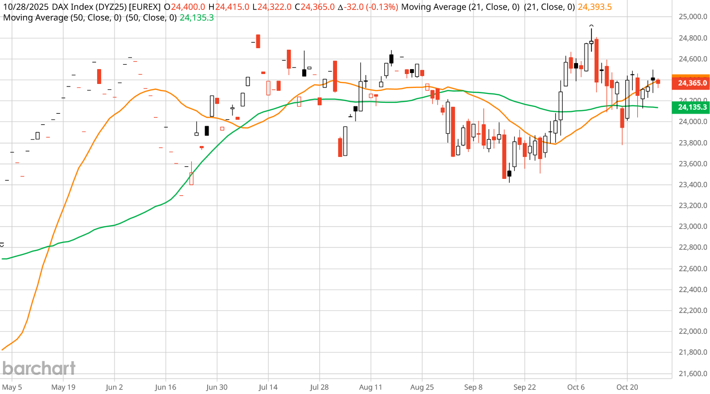 Il Dax future con scadenza dicembre resta per il momento al di sotto della resistenza statica di breve termine in area 24.500. Un livello quest’ultimo oltre il quale i successivi target sono individuabili a 24.600 prima e in zona 24.800/890 in seguito. Sotto 23.275, per contro, obiettivi in area 24.200/24.000.